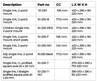10-230-F Flexible Head Support, single link, 2-point mount CC 106 mm, short posts